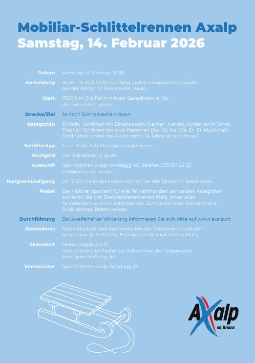 Anlagen sind gut überschaubar und deshalb auch bei Familien sehr beliebt. Auf der Axalp lässt sich abseits der Massen das Skifahren in seiner pursten Form geniessen. Doch auch wer schlitteln,